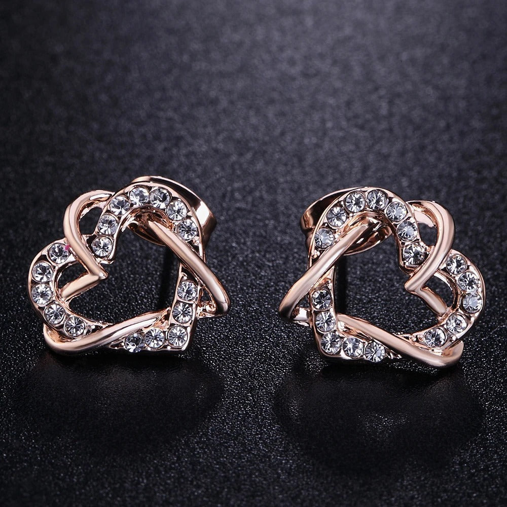 Rose Gold Intertwined Heart Crystal Earrings