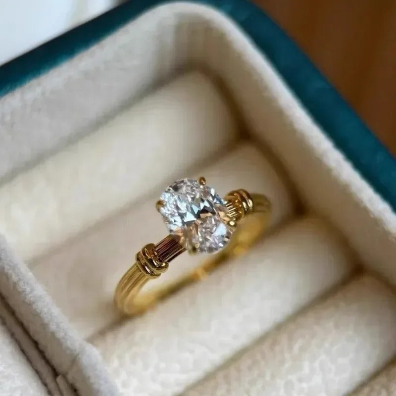 Vintage Gold & Silver Oval Line Knot Shiny Gemstone Adjustable Ring